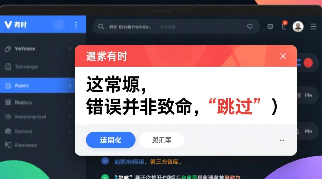 在Vue项目的开发过程中,遇到报错是家常便饭,有时,这些错误并非致命,或者源于第三方库,开发者可能会产生“跳过”或“忽略”这些报错的想法,以确保应用的主要功能能够继续运行,直接“跳过”报错往往治标不治本,甚至可能埋下更深的隐患,本文将深入探讨在Vue中处理和“跳过”报错的多种方法,分析其背后的逻辑与风险,并提供更优的实践建议。